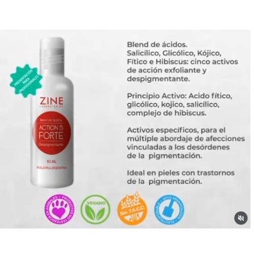 Contiene cinco activos de acción exfoliante y despigmentante. (Ácido Fítico, Ácido Kojico, Ácido Salicílico y Ácido Glicólico)
