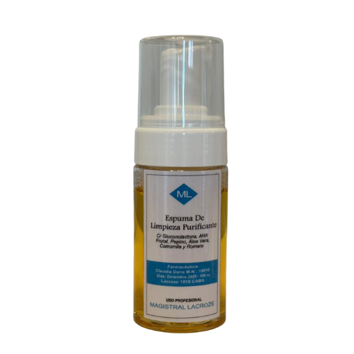 Espuma de limpieza formulada para purificar la piel sin agredir la barrera cutánea. Su combinación de gluconolactona (PHA), alfa-hidroxiácidos frutales y extractos botánicos de pepino, aloe vera, manzanilla y romero deja la piel limpia, fresca, luminosa y con textura mejorada.